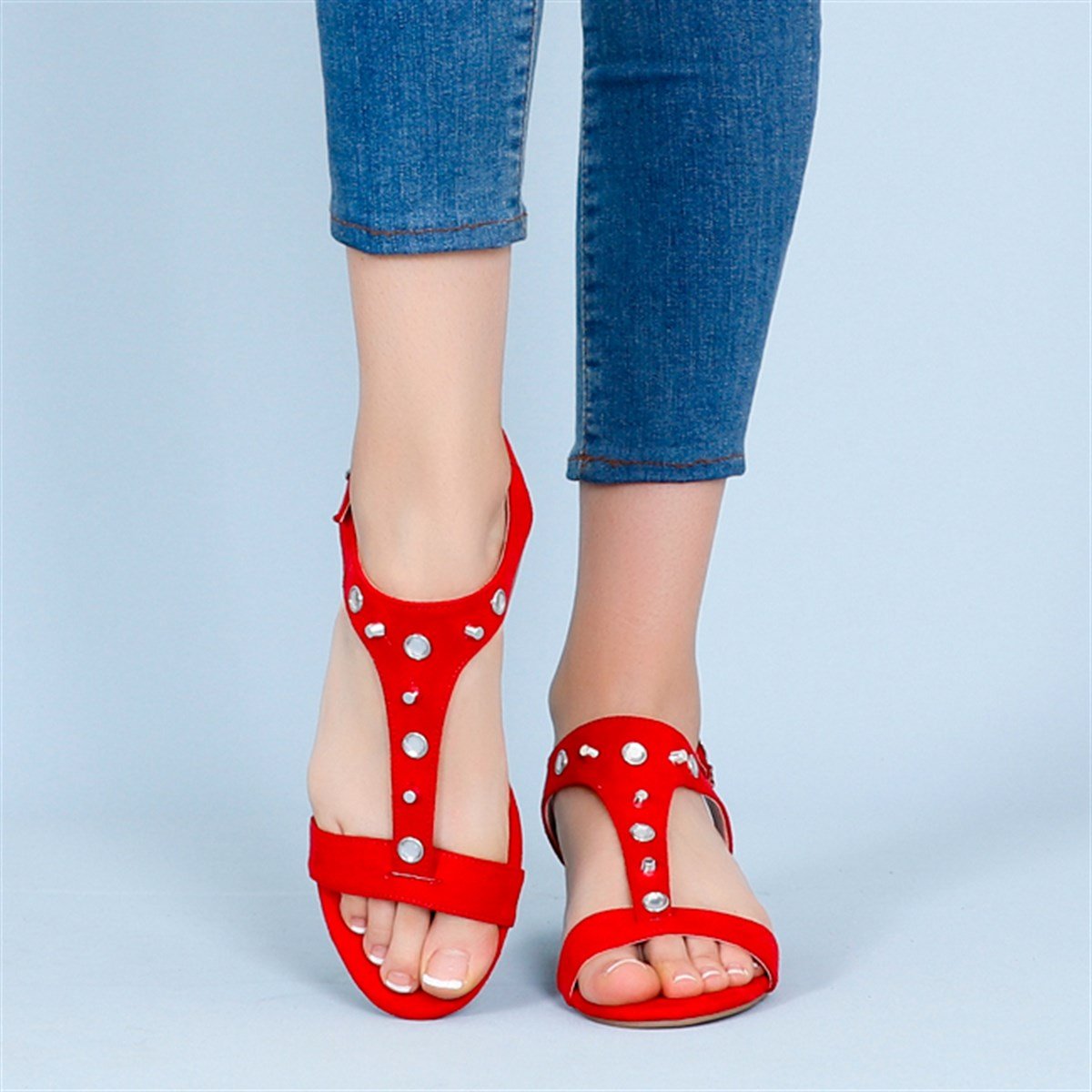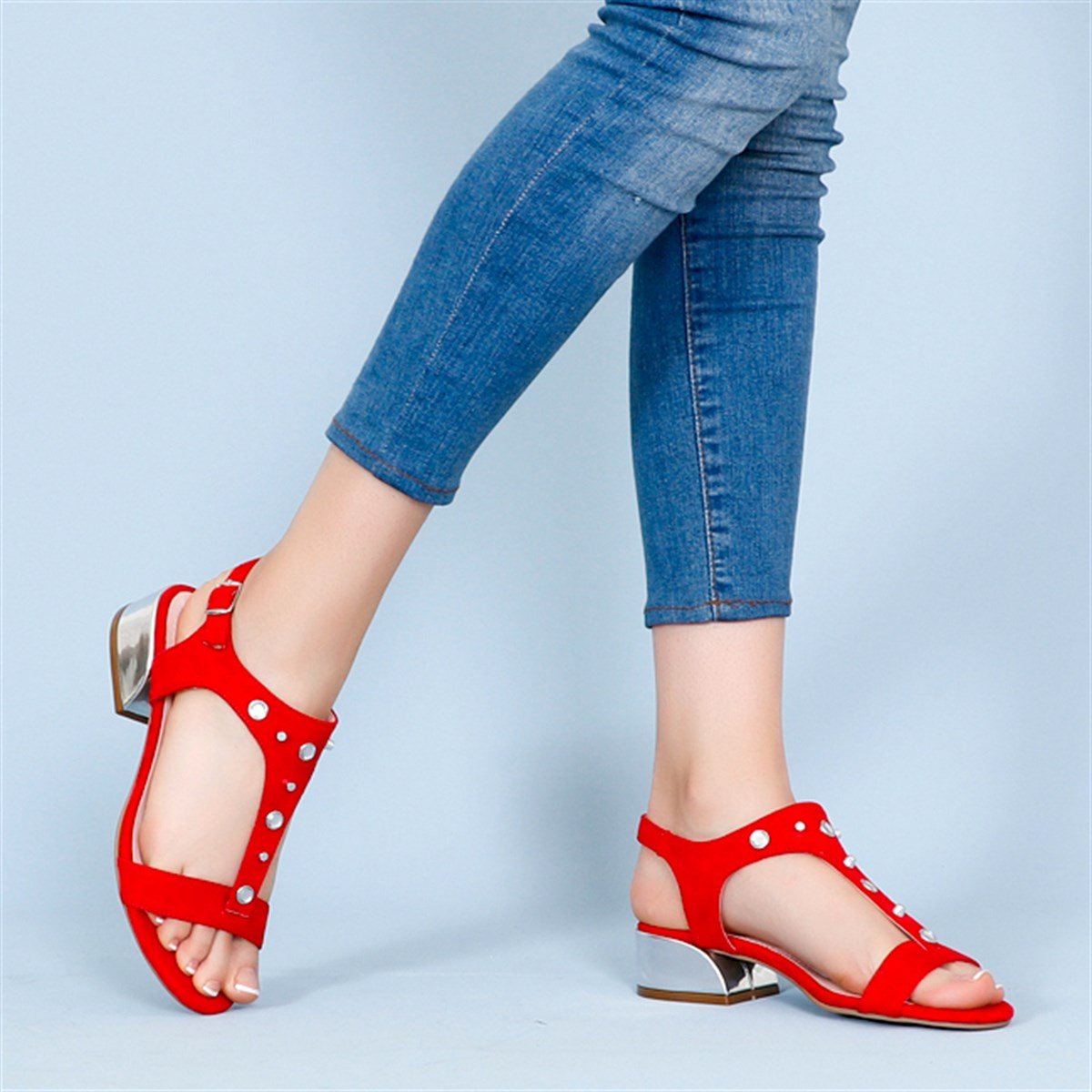 Kırmızı süet Alçak Topuk Kadın Sandalet 3003Y (495-18YZ0002072)