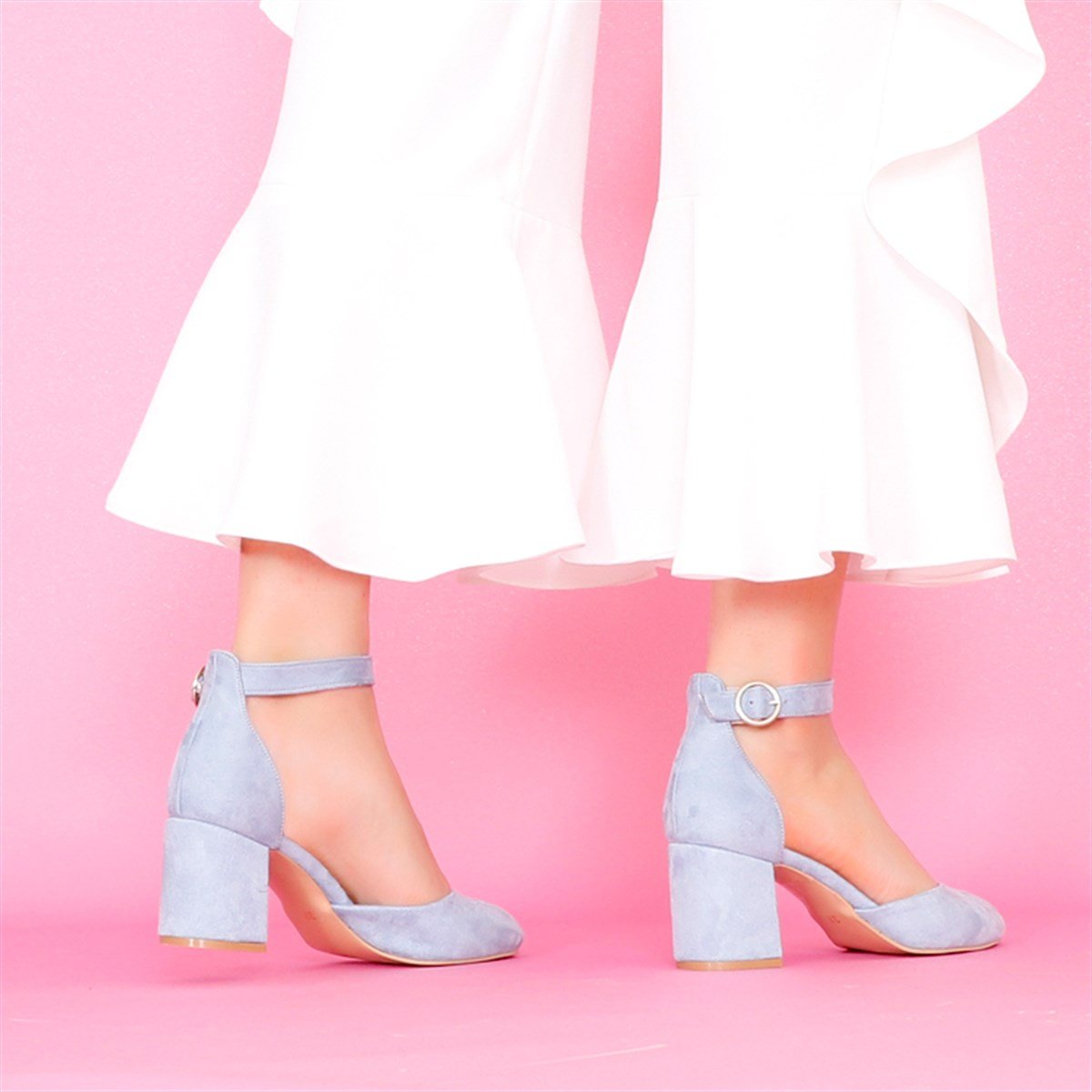 Mavi süet Alçak Topuklu Kadın Ayakkabı 307Y (186-18YZ0001141)