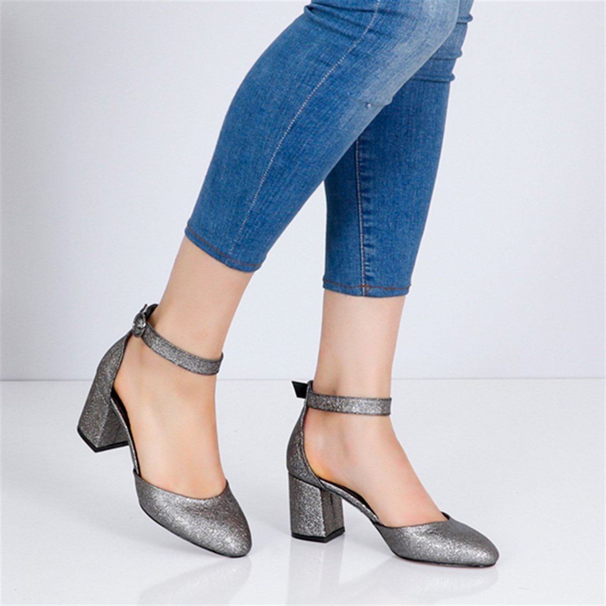Platin simli Alçak Topuklu Kadın Ayakkabı 307Y (186-18YZ0001A45)