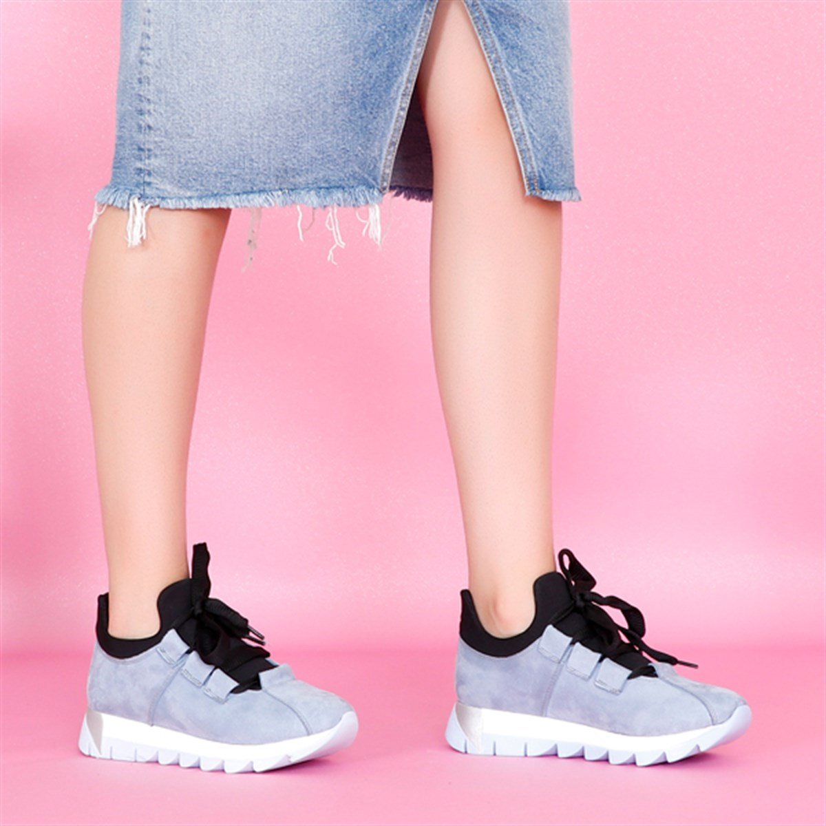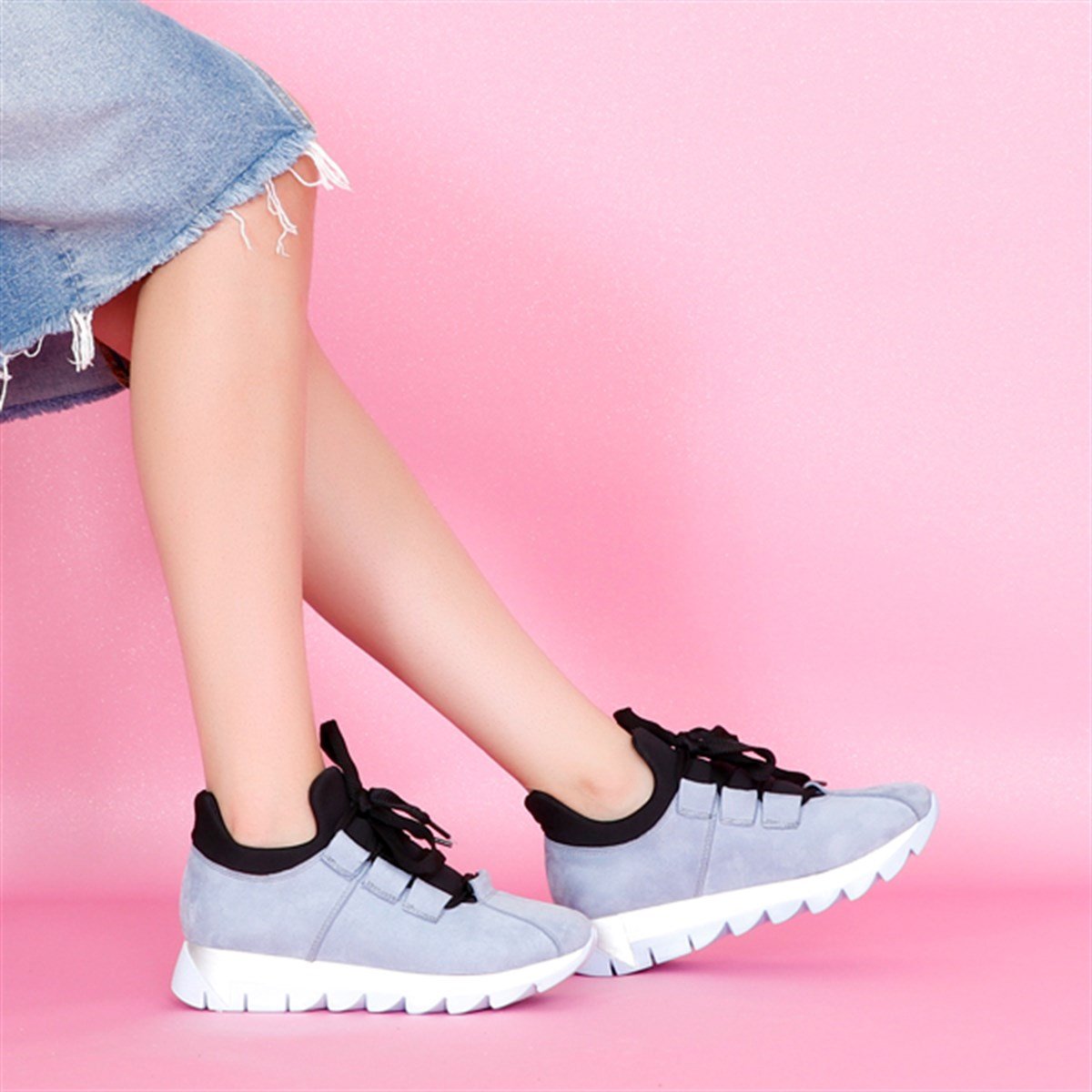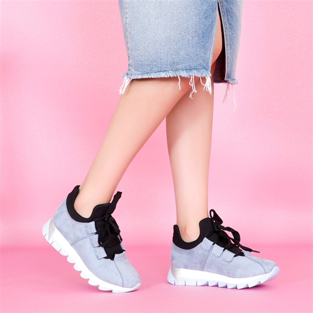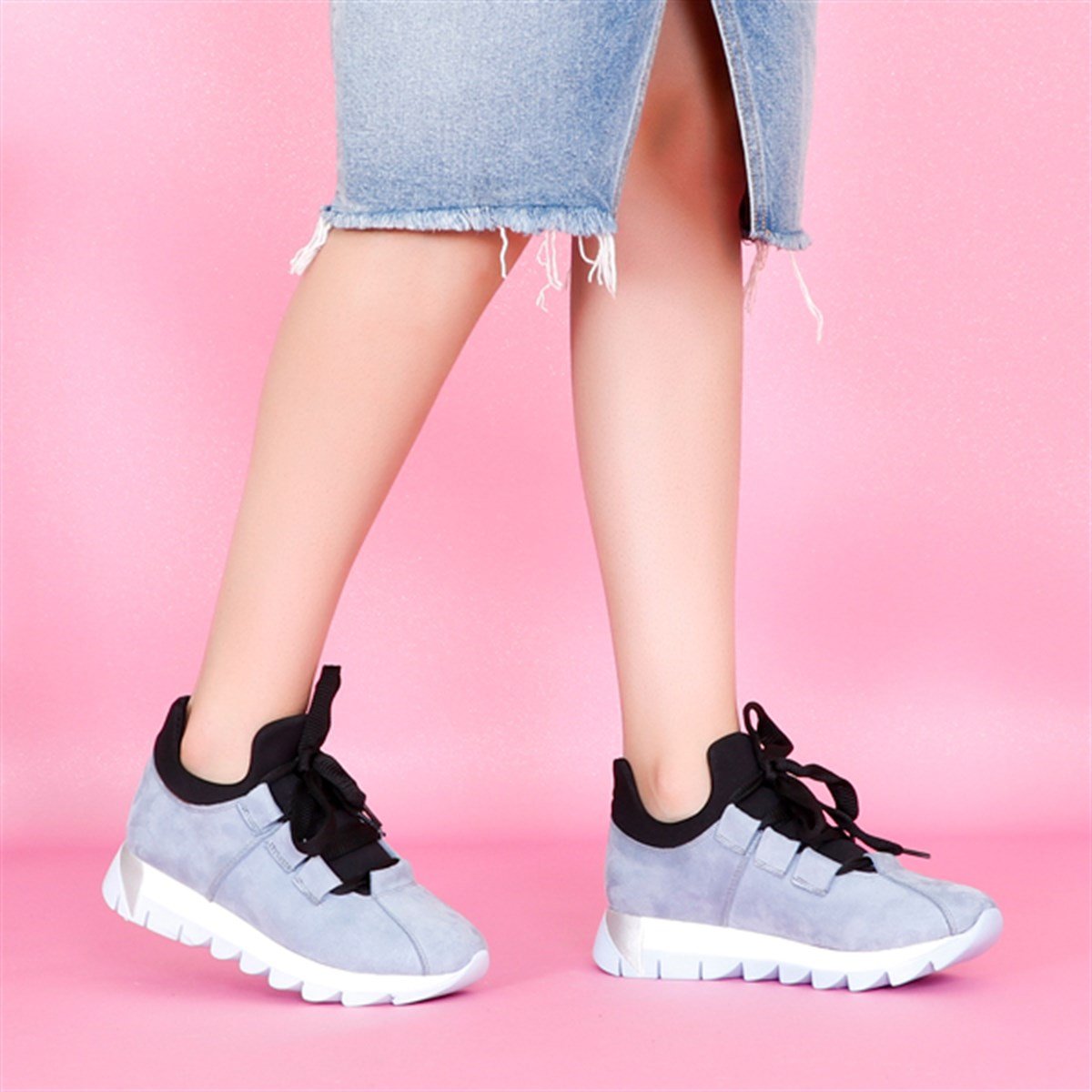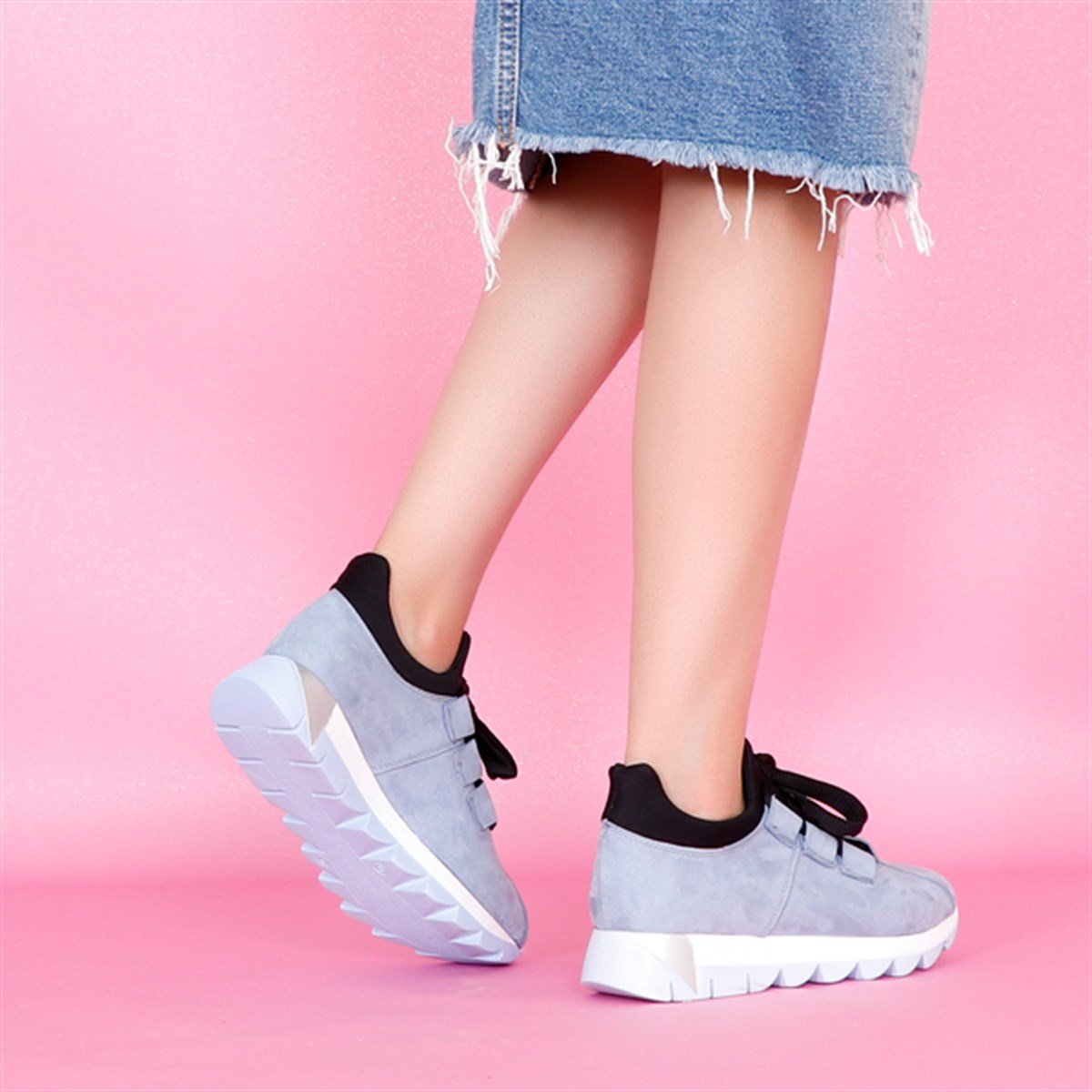 Mavi süet Düz Taban Kadın Spor Ayakkabı 01