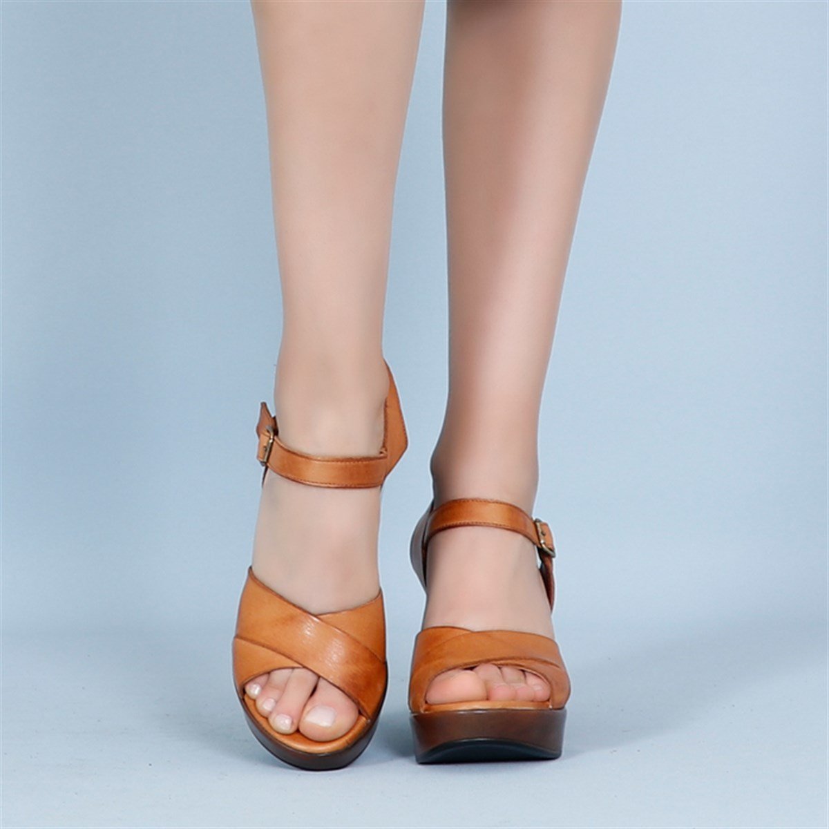 Taba Hakiki Deri Plarform Topuklu Kadın Sandalet 7002Y (439-18YZ0003007)