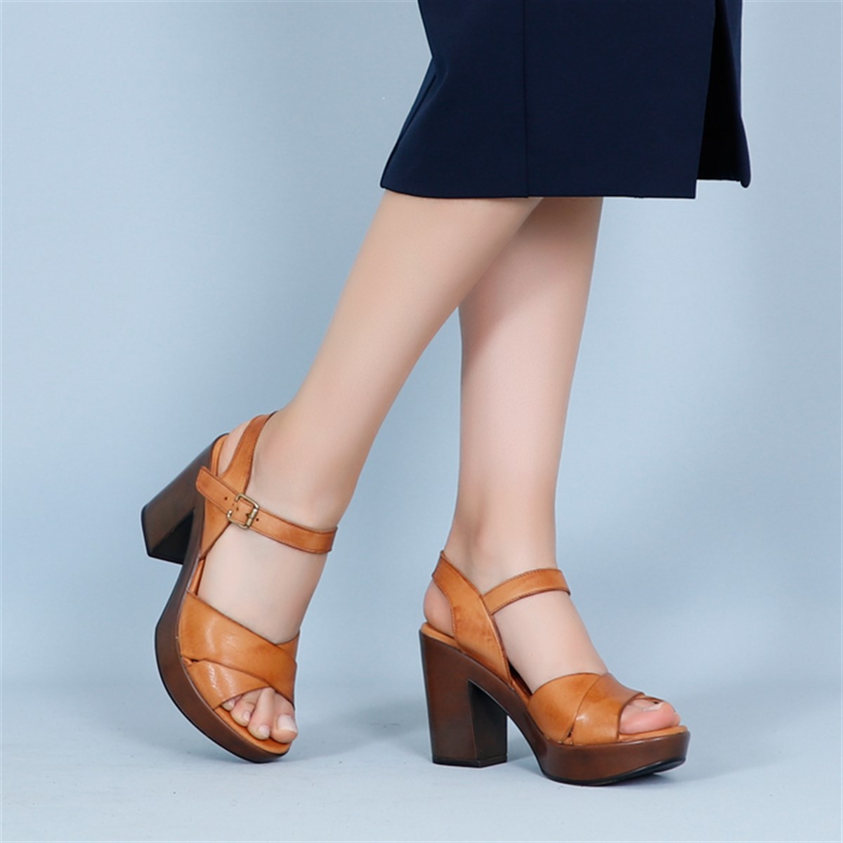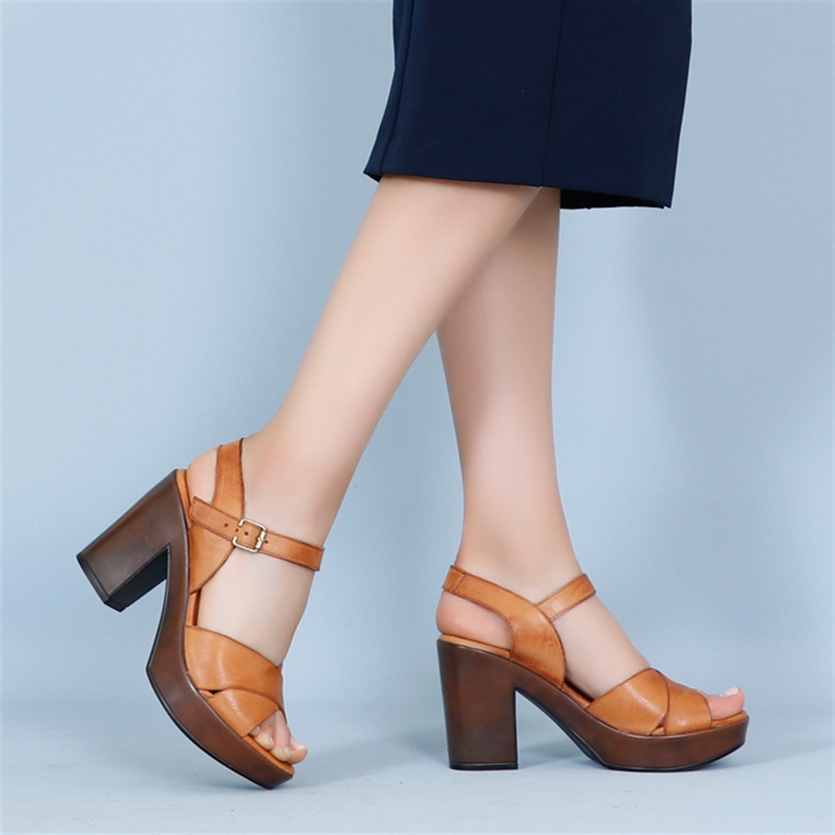 Taba Hakiki Deri Plarform Topuklu Kadın Sandalet 7002Y