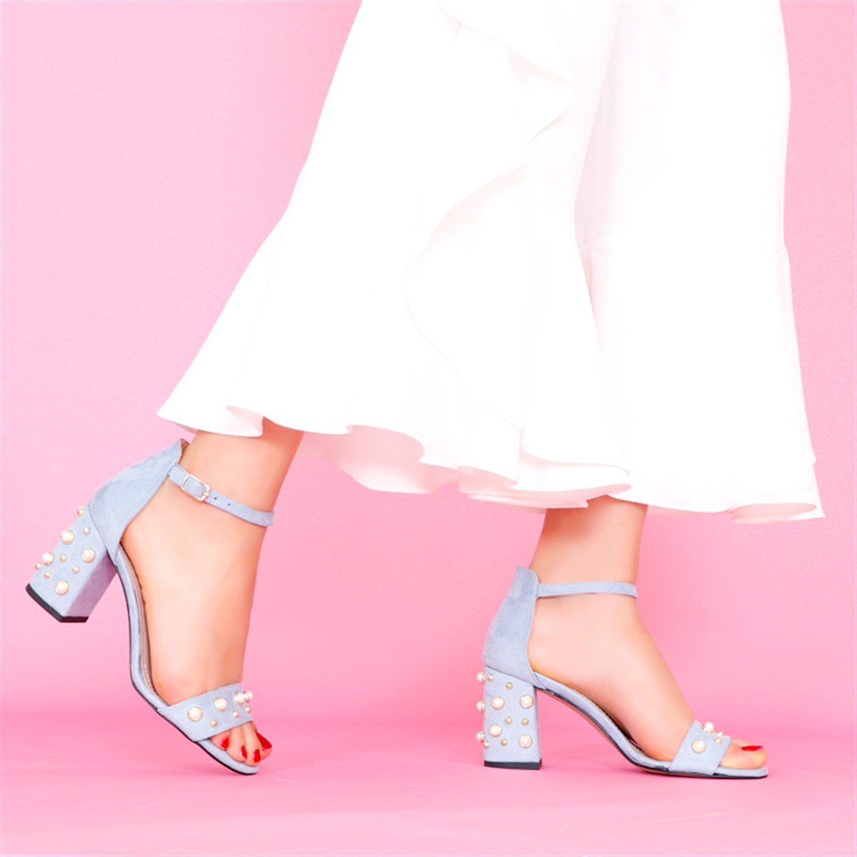 Mavi süet Kalın Topuklu Kadın Ayakkabı 4004Y