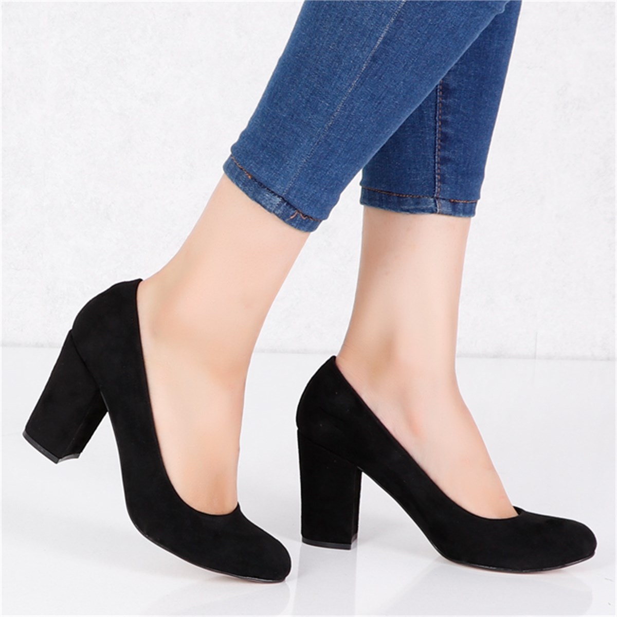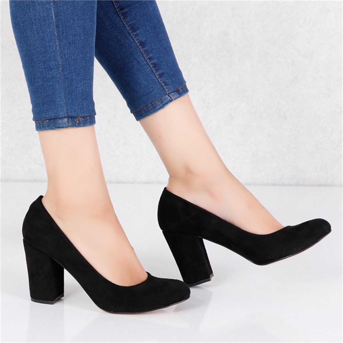 Siyah süet Kalın Topuk Kadın Ayakkabı 13106