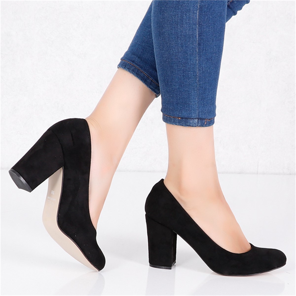 Siyah süet Kalın Topuk Kadın Ayakkabı 13106 (186-17MZ0012027)